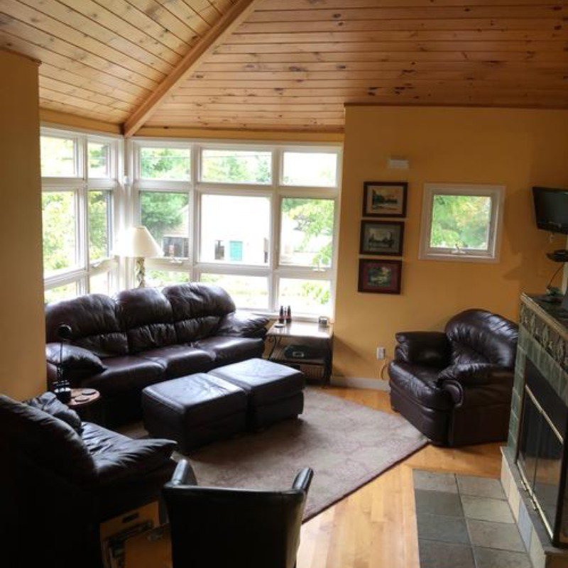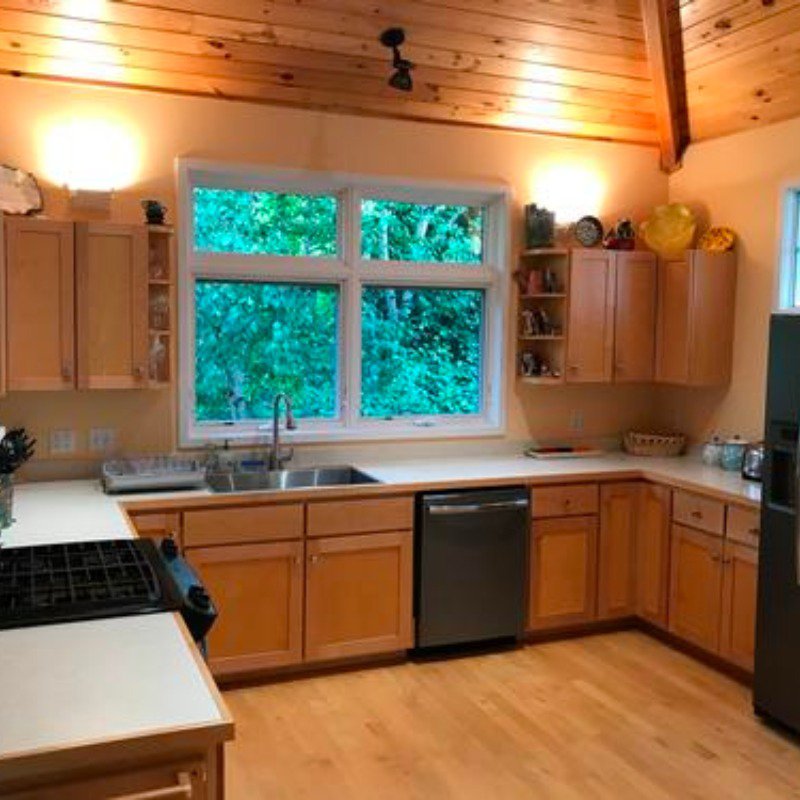 Our house is a 4 BR and 4 BA modern house on the north side of the Institution. Vaulted Wood Beam Ceilings in the Family Room, Gourmet Kitchen, Stainless Appliances, Leather Furniture, Linens, A/C, Cable TV, Wifi, W/D's, Bikes, Decks, Gas Grill, Outside parking for 2 cars, Cleaning weekly.
