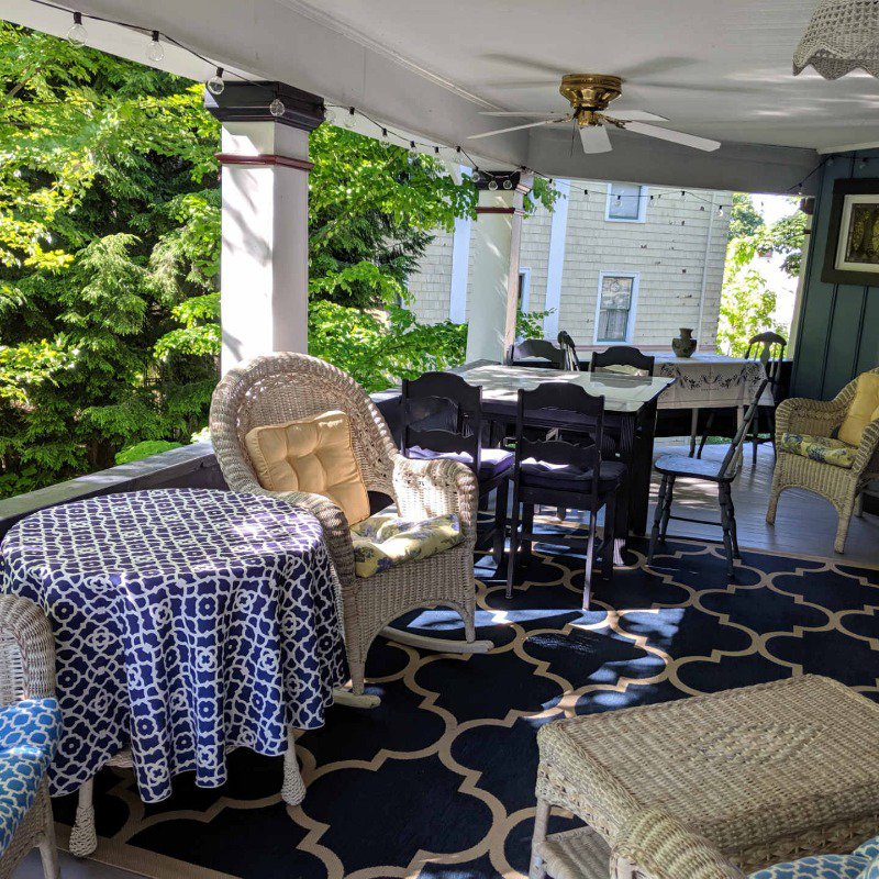 This large, top-floor apartment sleeps up to seven individuals. Booking this apartment grants you access to the entire second floor of the Collingwood, one flight up above the street with lovely views of Smith Wilkes Park. The large, private porch has eating tables and chairs as well as wicker furniture.