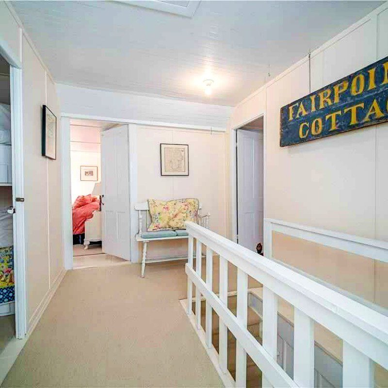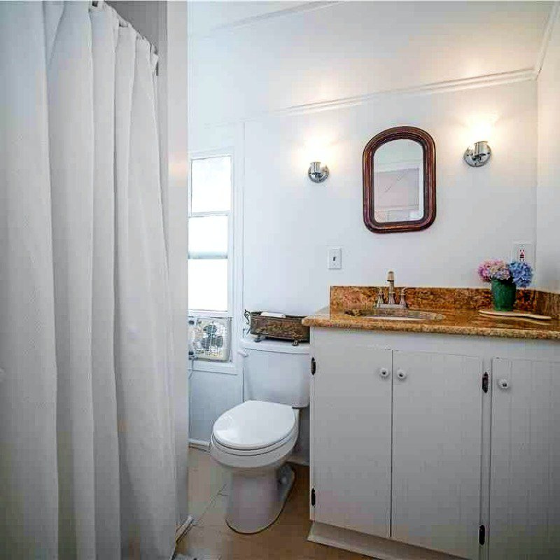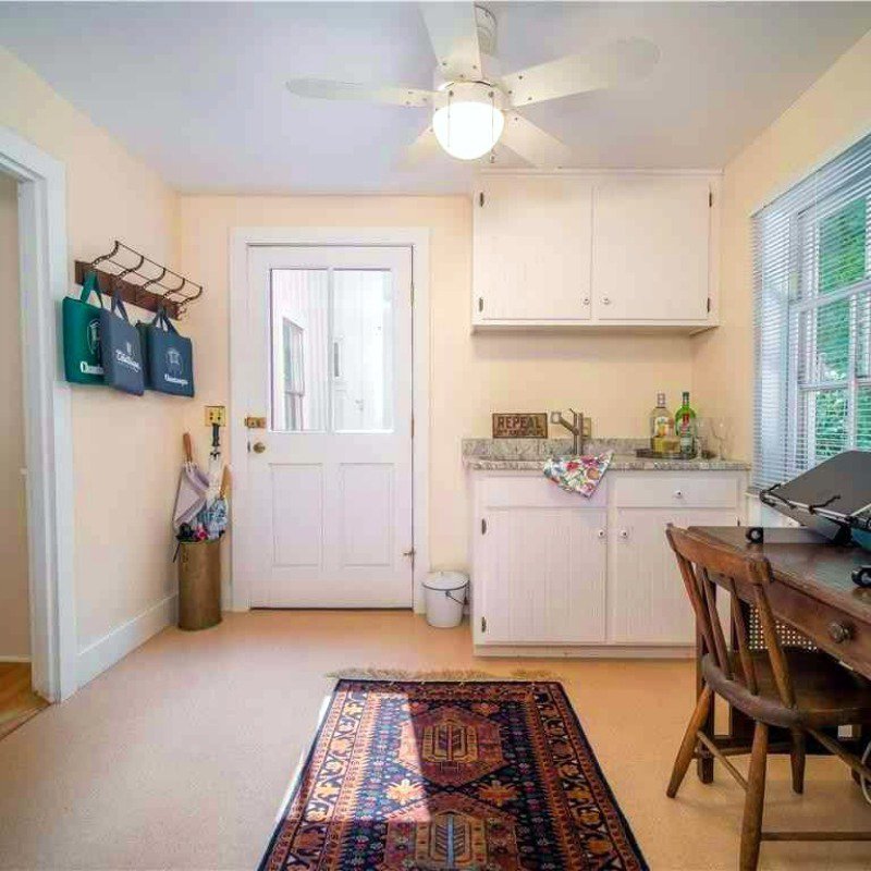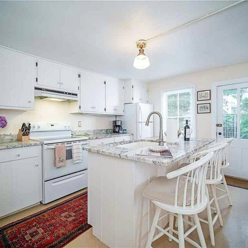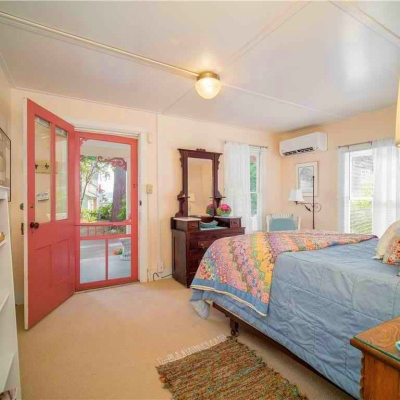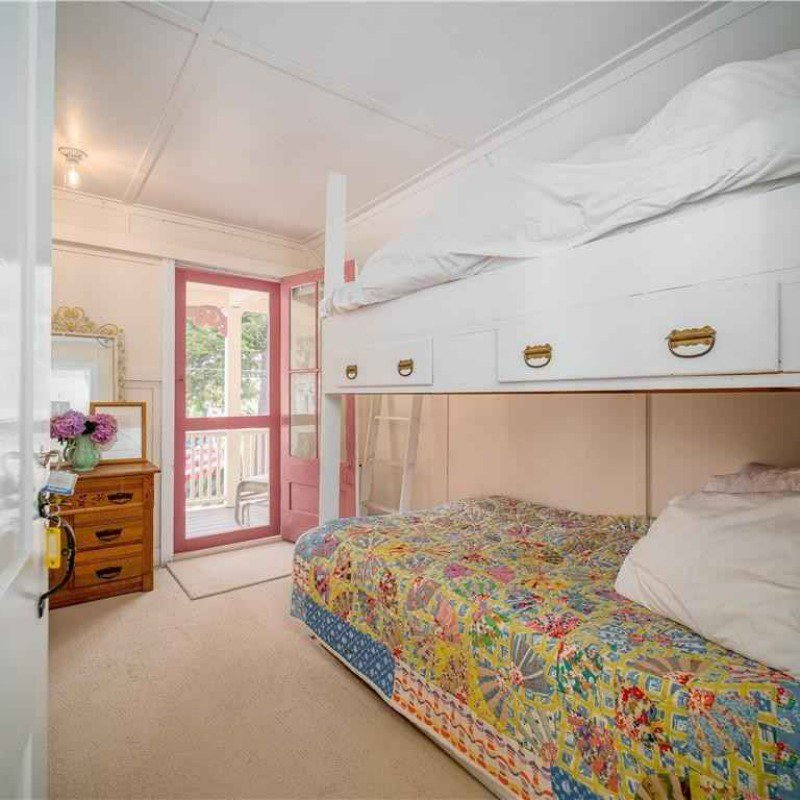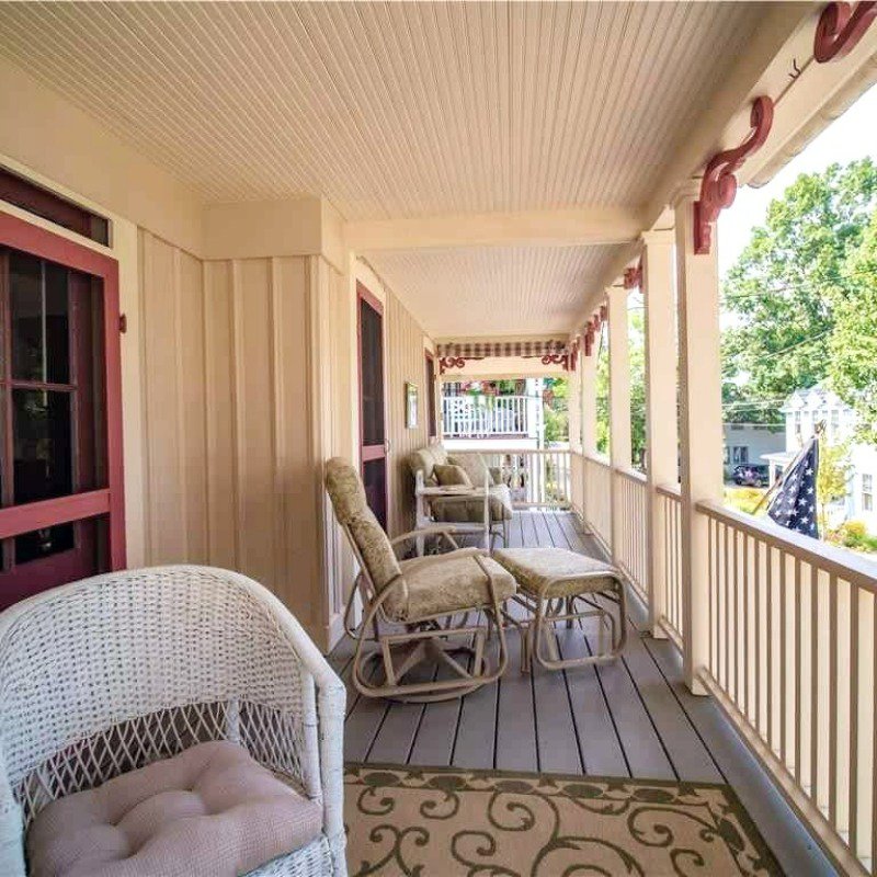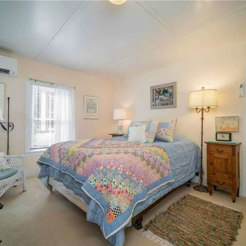 This spacious air-conditioned house offers 10 rooms on two floors, 3 full baths, plus two full width porches and a patio. Sleeps 11. First floor: living room, dining room open to granite kitchen with island seating for three, queen bedroom with porch access, office space, and full bath with tub and shower. Second floor: 3 bedrooms with direct porch access (1 queen, 1 twin, and twin bunk beds), another large queen bedroom, and a bonus room with trundle bed that sleeps two, and 2 full bathrooms (shower only).