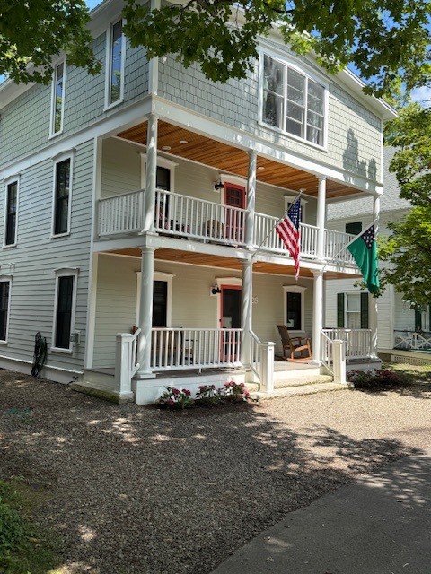 Perfectly located equidistant between the Amp and the Hall of Philosophy, steps from the Brick Walk, just above Boys & Girls Club. This 3-story Chautauqua classic was just renovated in 2022. First floor: two sitting rooms, a dining room with seating for 10, fully appointed modern kitchen, beverage refrigerator/ice maker, and a gas grill out the back door. Second floor: four bedrooms (all with queen beds), three full bathrooms, washer/dryer. Third floor: one bedroom (full-size bed), a full bathroom, a large open living area that can double as a bunk room (three twin-size beds line the walls). Outdoor space: the first two floors have front porches that run the width of the house; the third floor has an enormous rooftop deck that faces the back of the house. Central air conditioning, bedroom ceiling fans, Wi-Fi internet, and 55-inch TV. One parking space. No smoking. No pets.