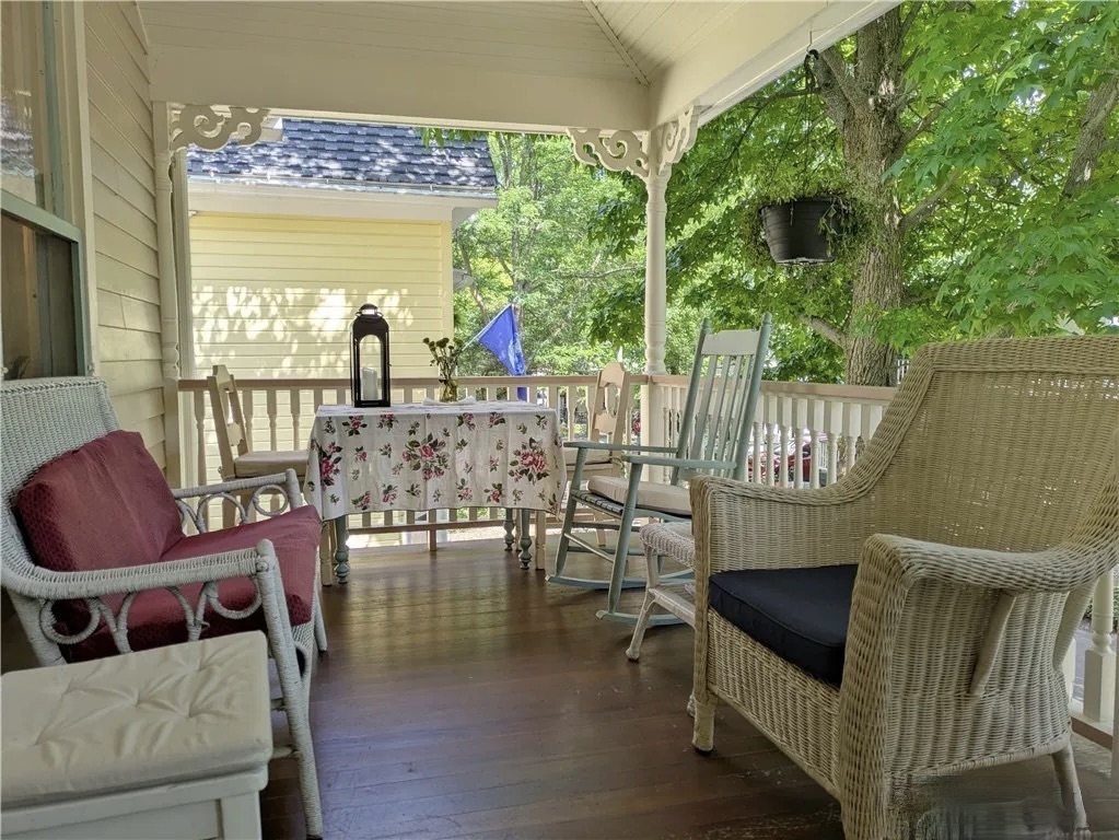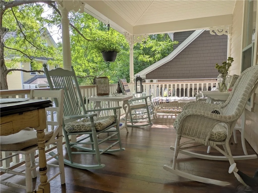 A charming Victorian cottage apartment with spacious porches on a quiet street in the heart of Chautauqua, steps from Lincoln Park and the Brick Walk. This one-bedroom 2nd floor apartment was recently updated and includes two twin beds and sink in bedroom, a private bathroom with walk-in shower, a fully equipped dine-in kitchen, living room with sofa and armchairs, Wi-Fi, window A/C, ceiling fan, and shared washer/dryer. The lovely front porch is fitted with rocking chairs and a table for outdoor dining. Just a few minutes stroll to the Amphitheater, Hall of Philosophy and Bestor Plaza. Rate includes weekly cleaning. Discounts for 3+ weeks, season and pre and post-season rentals.