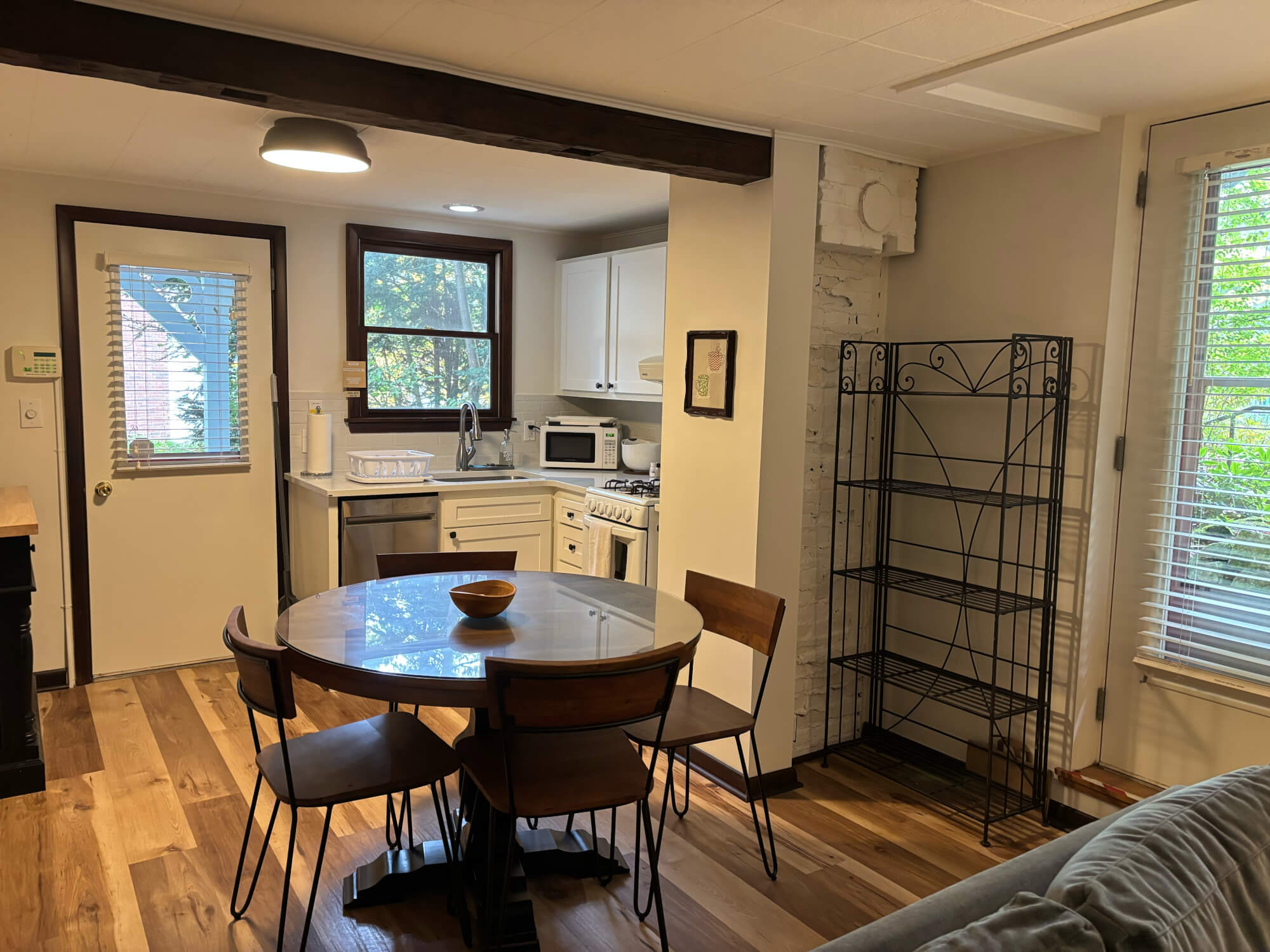 Garden Level: Updated in 2022! Not your typical Garden Level unit with two walk-out doors and two patios! Walk along the right side of the house, down garden steps, to a side patio adjacent to Miller Cottage Garden to enter your Chautauqua home; or continue to the second entrance from the covered patio off the kitchen. The master bedroom has a king, and the 2nd bedroom has twin bunk beds. Furnished living room and a fully equipped kitchen that also includes a dishwasher and disposal. All linens, towels, private washer/dryer, air conditioning mini split, streaming service TV, and Wi-Fi included. Sorry no pets.