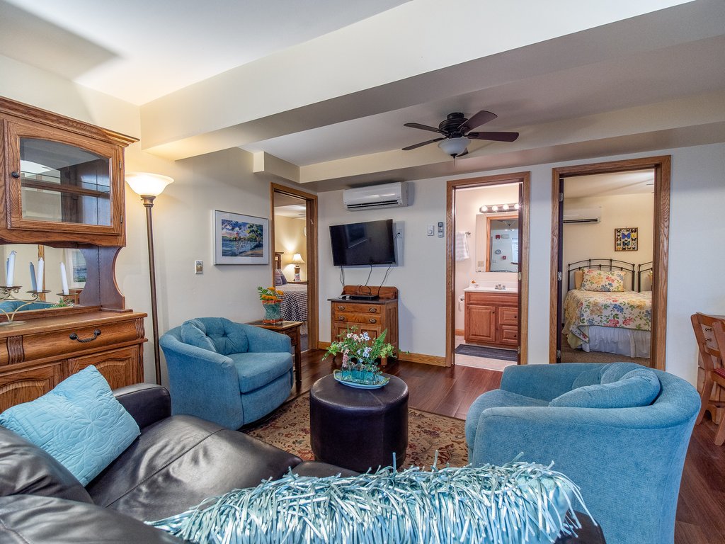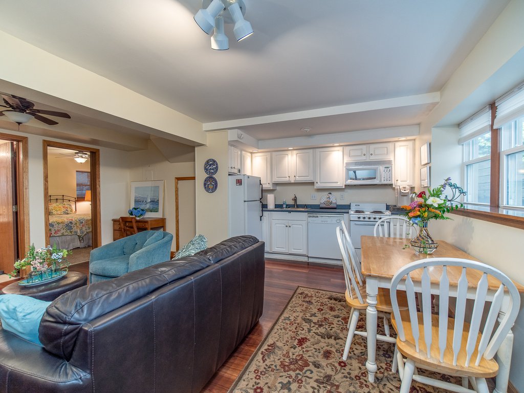 Unit GA at the Longfellow is centrally located just off Bestor Plaza, close to the Amphitheater, Library, Bookstore, and cafés. This fully air-conditioned unit has two bedrooms, two bathrooms, with a well-equipped kitchen, living room and dining area. The building offers two covered porches with seating, a large first floor sitting room, and laundry facilities. WiFi is available throughout the building; renters may provide their own television streaming devices or use the provided Roku guest device.