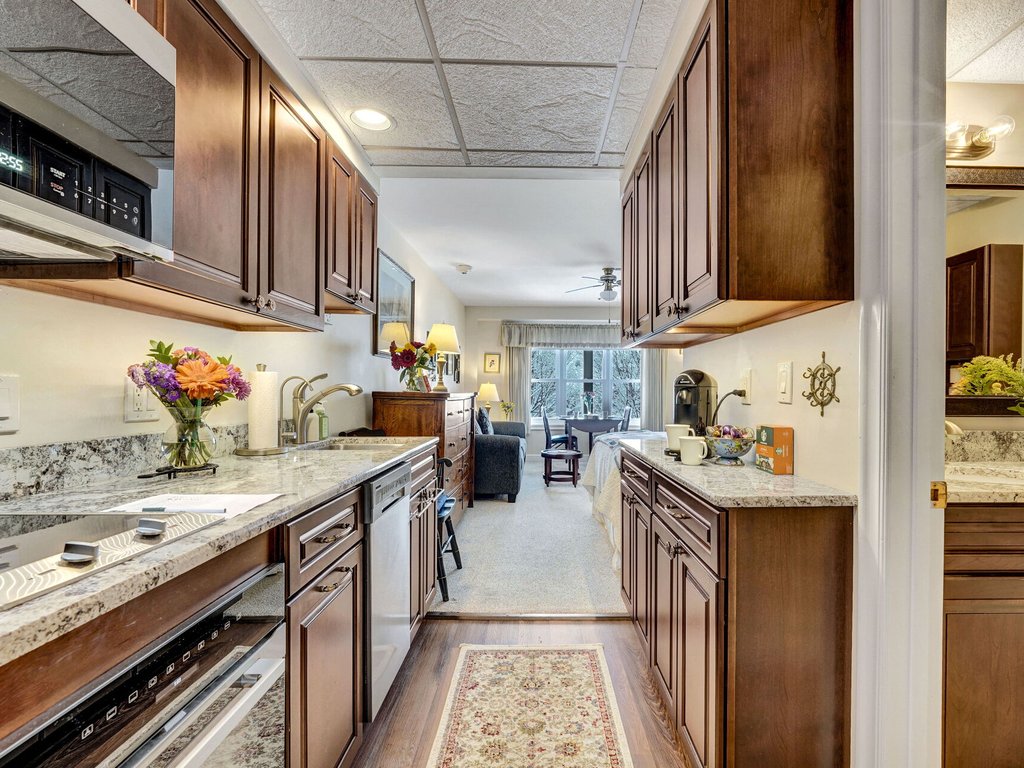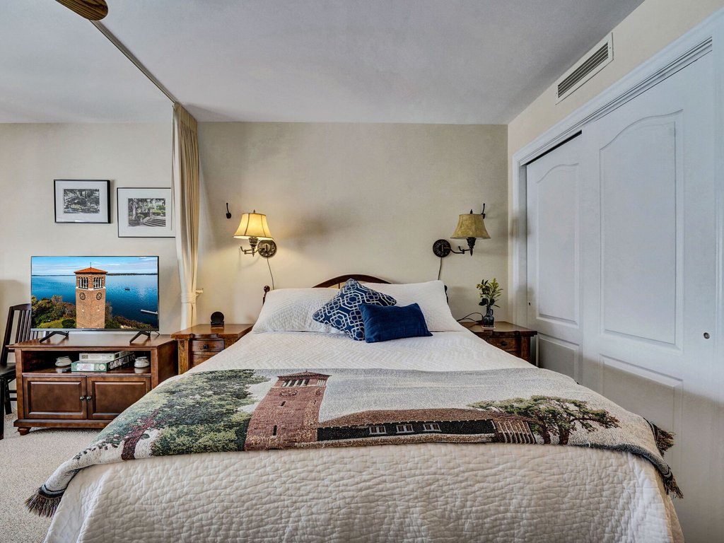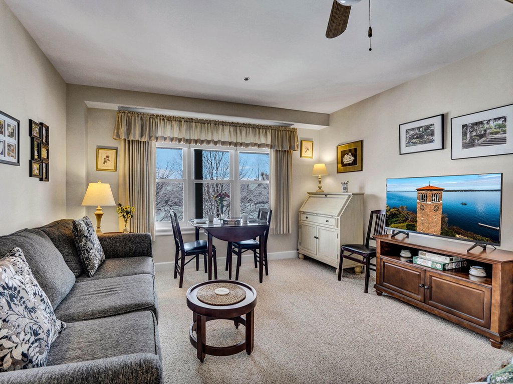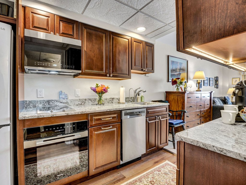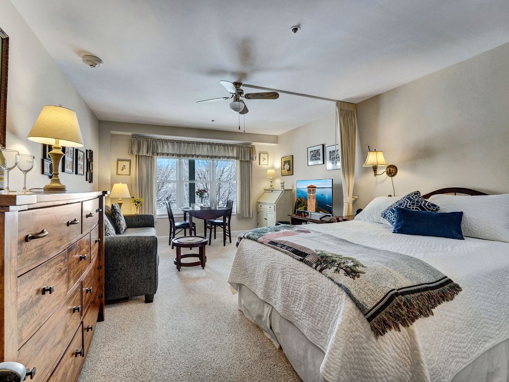 Enjoy front row views of Bestor Plaza in this newly updated 2nd floor efficiency condo(elevator in the building). Airy, private and entertaining all at once. Central air-conditioning, laundry down the hall, shops and the spa down the elevator, and all Chautauqua has to offer just out the front door. The fully equipped kitchen includes a reverse osmosis spigot at the the kitchen sink for drinking water and a Nespresso pod coffee maker. Queen size bed, WIFI, and a soaking tub complete this package. The St. Elmo also has a large lobby and covered front porches to enjoy as well. A parking space in the South Lot is an added bonus! $2500/week, $150 cleaning fee.